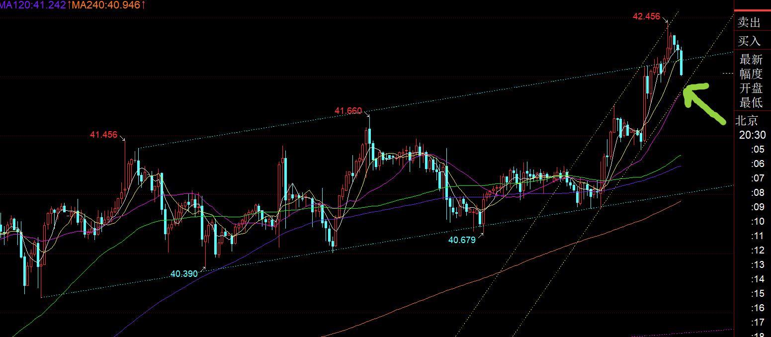 Second, in terms of silver: Silver is the most beautiful this week, and it is recommended that it stick to bullish on 40.4, 40.5, 40.6, 40.7-40.8, and the low point gradually moves up. Today it explodes, hitting above 42 US dollars;
