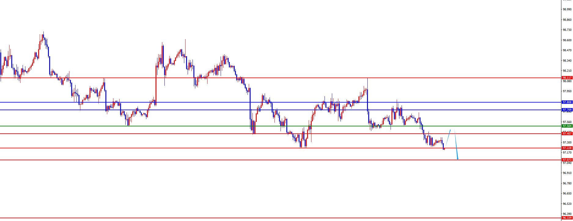 The US dollar index has a short range of 97.40-50, defending 5 US dollars, targeting 97.20-97
