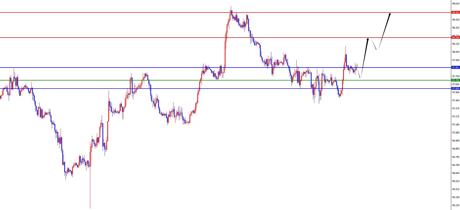 The US dollar index has a long range of 97.70-80, with a defense of 5 US dollars, and a target of 98.20-98.50