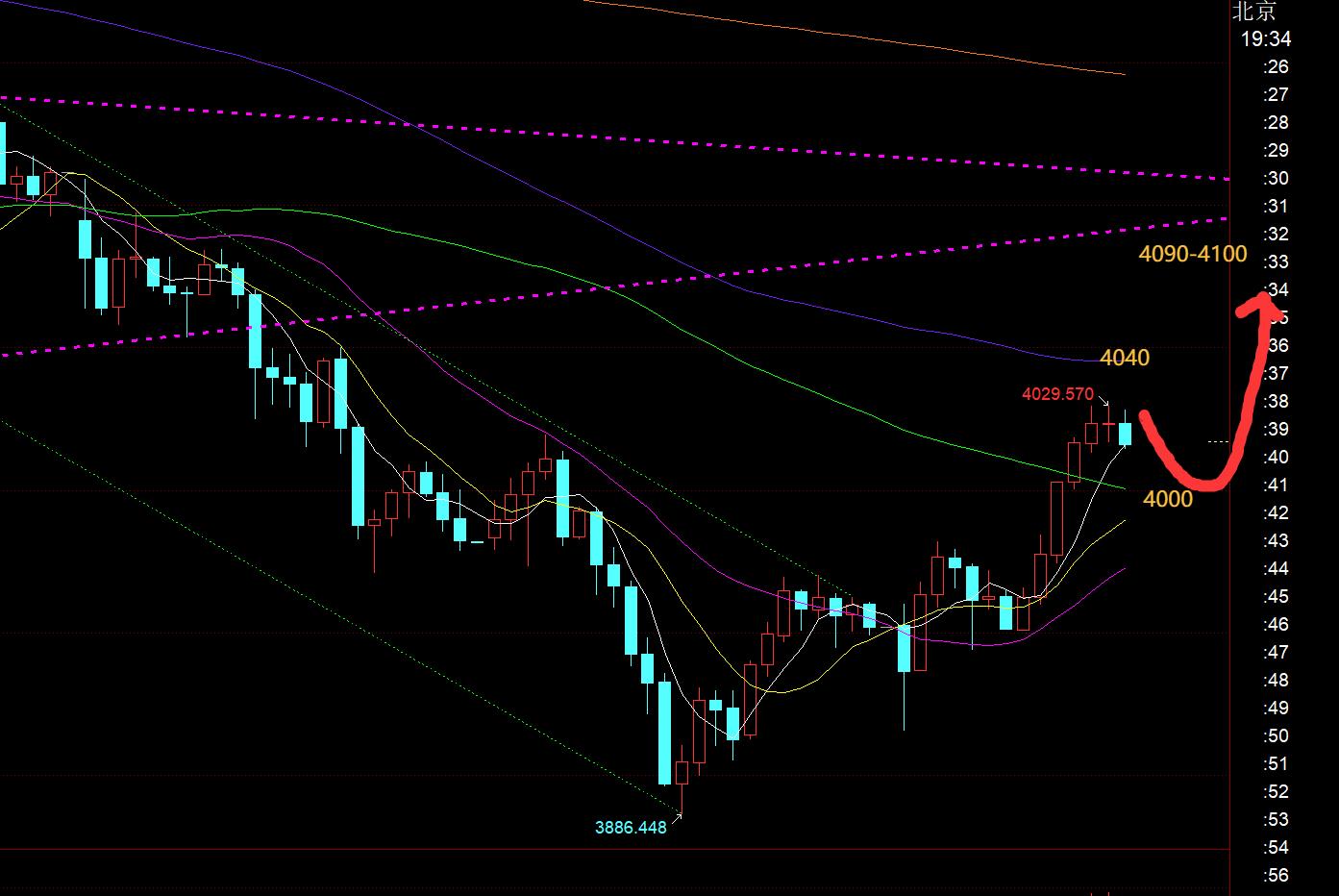 第一,黃金日線級別:這兩日一直提到日線若失守中軌,也容易發生假摔行為,也就是很難走弱延續,一般第二日,最遲第三日會出現一根底部大陽再次收盤站上中軌,來完成一個短期底部信號;雖然昨日再次打壓破新低的力度有所超預期,不過尾盤收了長下影K還是可以的(原本這根K應該是偏小的),但今日當前出現一根大陽就符合了假摔概率,理論上應該收盤會重新站上中軌4056之上,就看後半夜降息的力度以及老包講話是否偏鴿;一旦收盤站上5日4040,那麼容易去試探10均線4134,再往上就是前期上行通道下軌反壓點4200一線,至少會出一個次高點;假如3886是這一波下跌的底,那麼參考分割,後市留意的三個阻力就是4075、4134、4192,較強阻力4275-4326(這個去試探可能難度大一些);