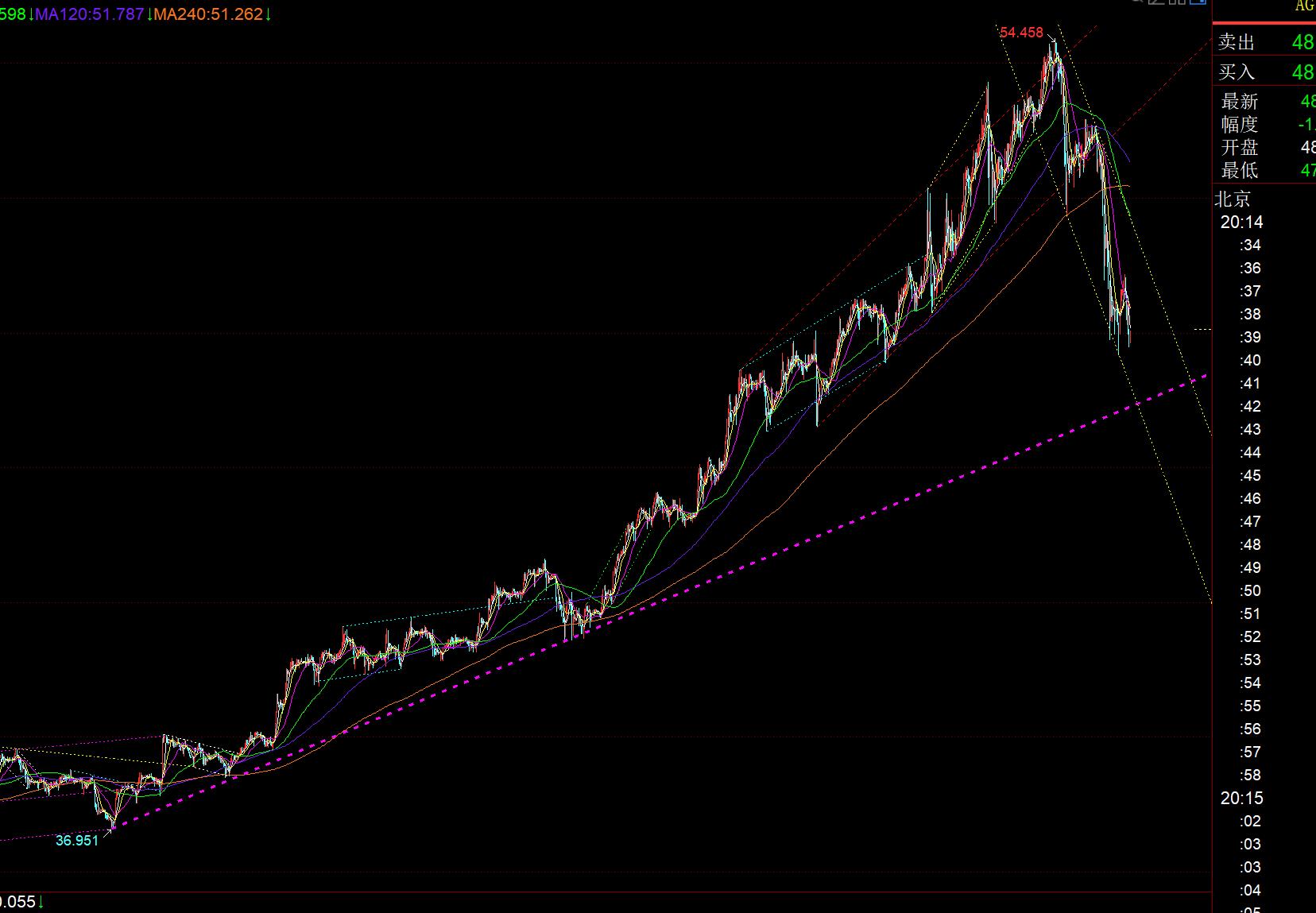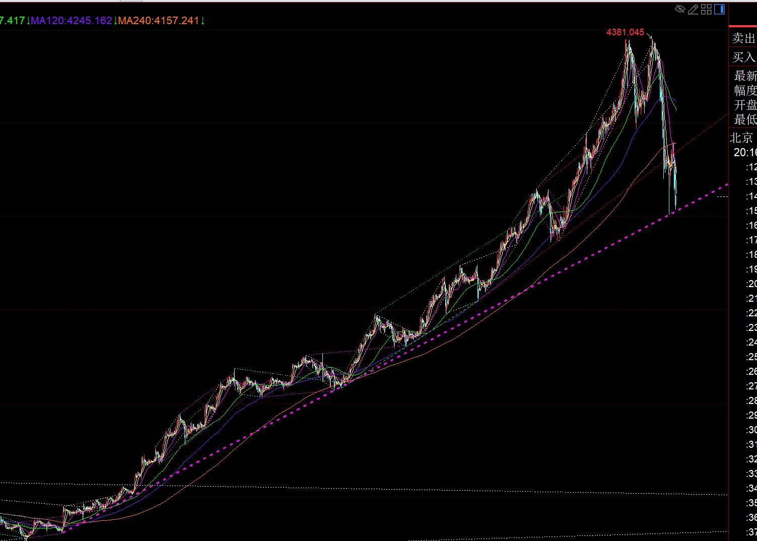 First, gold: it hit directly from 4380 yesterday to today's low of 4004, setting a record for the largest single-day decline in history; and this wave of decline is the beginning of choosing to go Correct the unilateral increase of 3311 all the way to 3481; then from the low point of 3311 to the high point of 3481, divide it and draw, you can know that it has not reached the 382 division position of 3972, indicating that the overall trend is still maintaining a strong upward trend, and the rapid suppression of the correction is conducive to stabilizing in the later period and continuing to set new historical highs; it is scary to fall slowly all the way, but not sharp, because it The sell-off will end in a short time; the current low of 4004 is close to the daily middle track and the weekly 5 moving average. There is indeed a certain psychological key defense. However, in order to effectively stabilize, the daily line must have at least a bottom Yang or a long lower shadow K; in addition, if it breaks below 4004, it may also have a flop, that is, the Yin line breaks below the daily middle track first, and the Yang withdraws on the second or third day. In February this year This trend often occurs in May and April. You should also pay attention to this. Even if it goes down, don't panic. The space below will not be too big. Below 4004, there are key supports such as 3945 and 3914. The resistance above the daily line is relatively clear, that is, the short-term 5th and 10th will gradually become counter-pressure. Only if one day breaks through to stand on the 5th, then the trend will return to the strong upward stage;