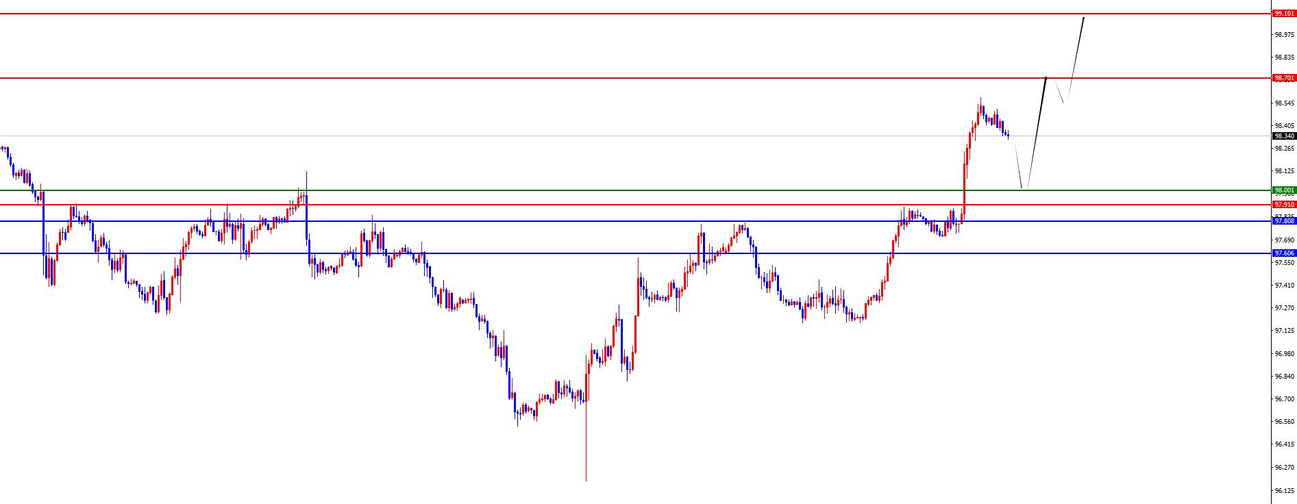 The US dollar index has a long range of 97.90-98, with a defense of 5 US dollars, and a target of 98.70-99.10