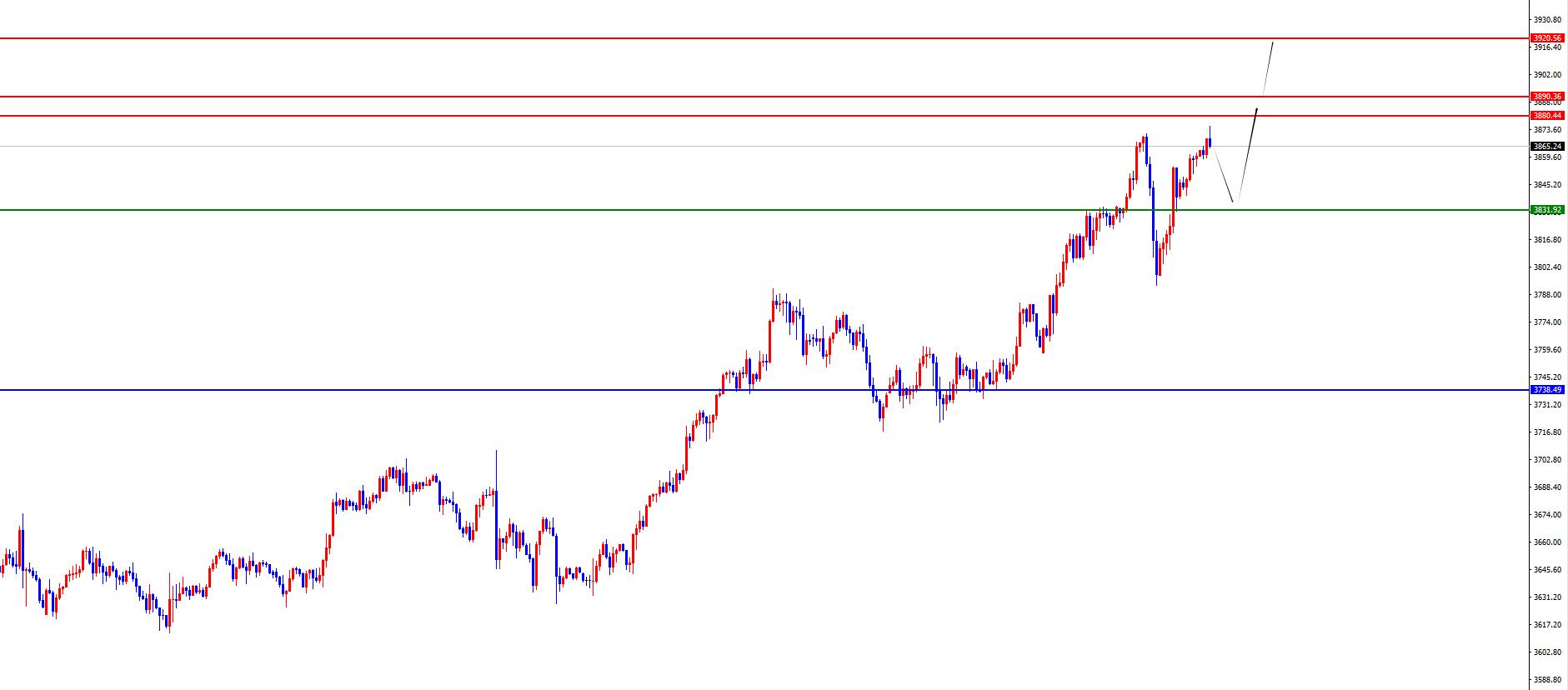 D'après l'analyse multi-cycle, observez d'abord le rythme mensuel. Du point de vue à long terme, la position 3130 est le bassin versant de la tendance à long terme. Le prix peut être traité davantage à long terme. Du niveau hebdomadaire, le bassin versant hebdomadaire et court actuel est à 3490, et le prix est supérieur à cette position et la ligne moyenne peut être traitée davantage. Dès le niveau quotidien, nous devons prêter attention au soutien régional 3735 pour le moment. La bande au-dessus de cette position est traitée plus souvent, et nous continuerons à traiter la méthode de trading à droite. Du point de vue de quatre heures, lors de l'observation du rythme de la montée de l'or, le prix restera fort tant qu'il ne brise pas le soutien de quatre heures. Le prix ne s'ajustera qu'après la rupture. Actuellement, le soutien de quatre heures se trouve dans la zone 3831-3832, donc le prix continue d'être optimiste à ce poste.