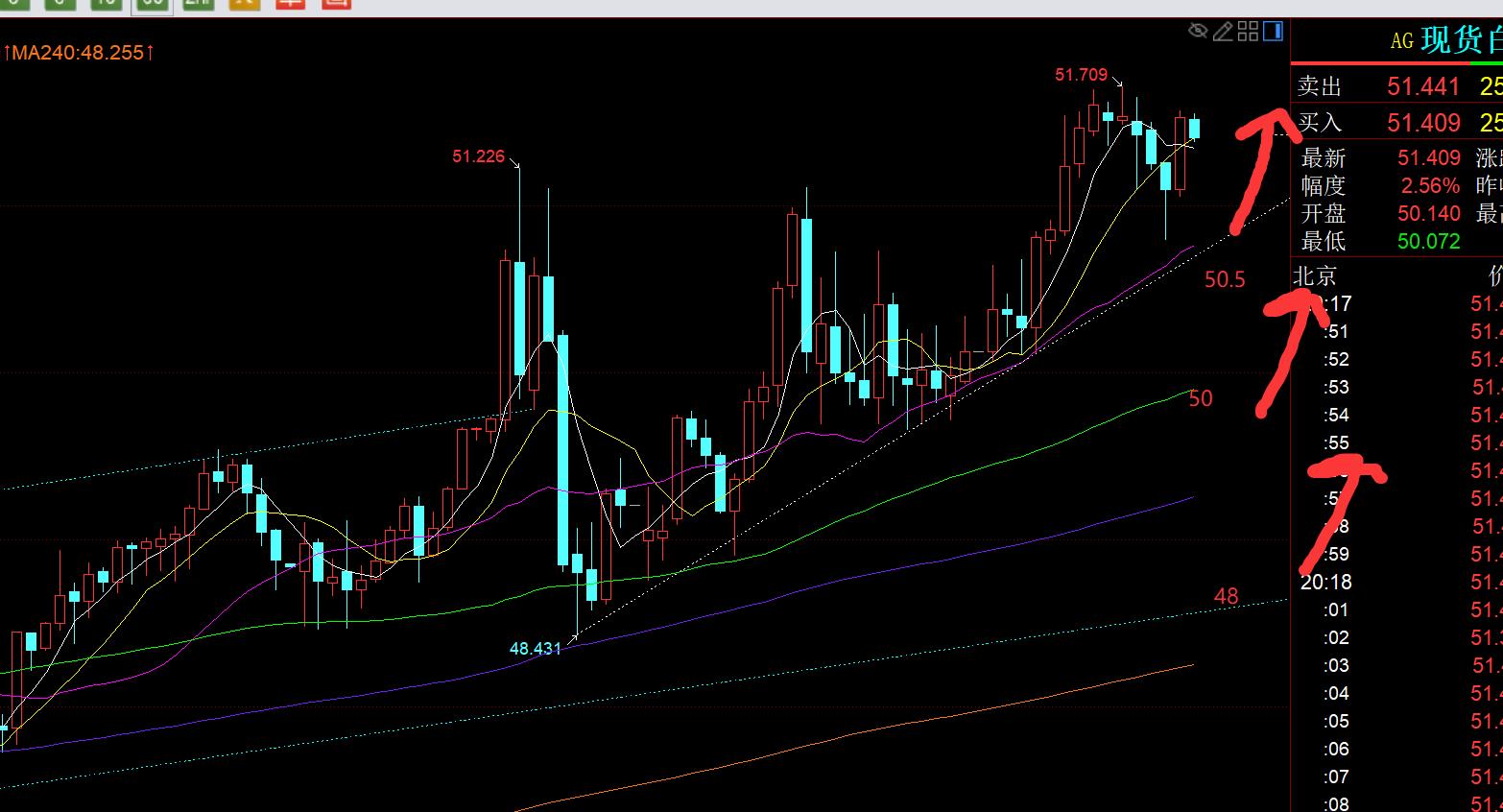 Deuxièmement, en termes d'argent : la volatilité a augmenté rapidement au cours des deux derniers jours, et un léger mouvement au cours de la journée est de 0,4 à 0,5, xmhouses.comme mentionné sur le marché asiatique vendredi dernier, ceux qui sont audacieux peuvent directement poursuivre la hausse après la cassure. jusqu'à 50, avec l'objectif de 51 en place, mais c'est vraiment difficile à défendre à ce moment-là, à moins que la bande ; le marché européen a fortement augmenté, atteignant à nouveau le plus haut de la nuit de 51,1-51,2, et le marché américain a suivi la tendance haussière, mais il est dommage qu'il ait reculé un peu plus, juste percé, puis le marché américain a tiré vers le haut pour atteindre l'objectif initial ;