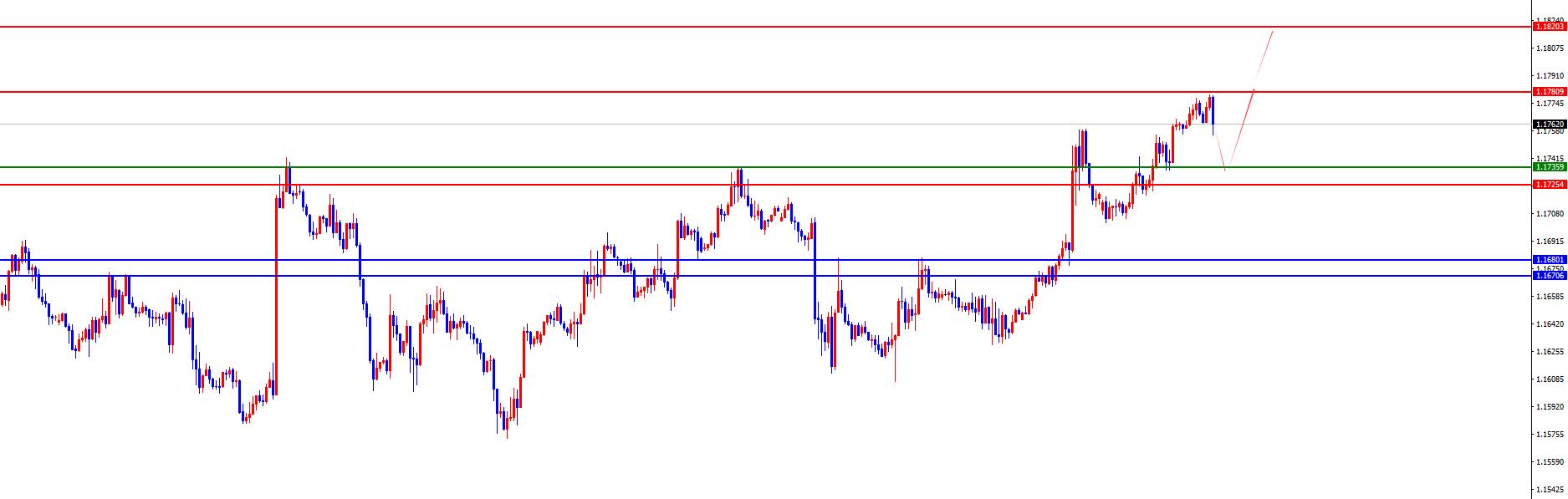 Europa e Stati Uniti hanno un sacco di gamme di 1.1725-35, la difesa è 40 punti e il bersaglio è 1.1780-1.1820