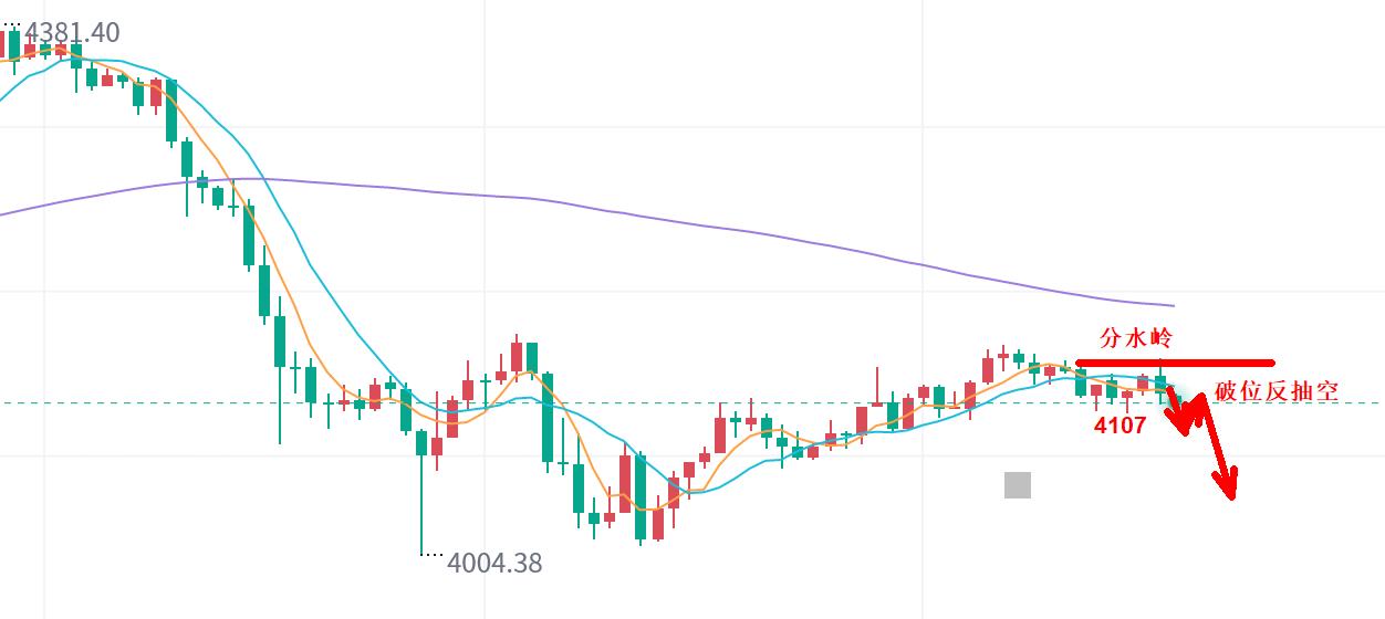 (1), il massimo mattutino dello spartiacque superiore è 4145, livello di stop loss breve.