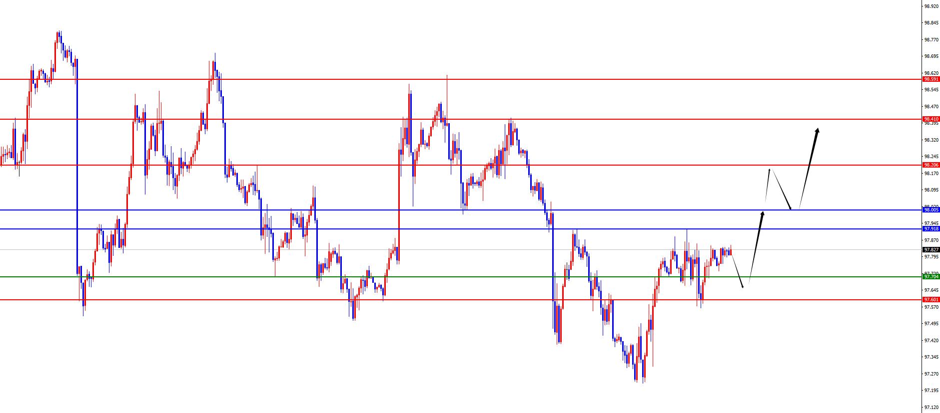 The US dollar index continues to hold in the range of 97.60-70, defending 5 US dollars, and targeting 98.20-98.40-98.60