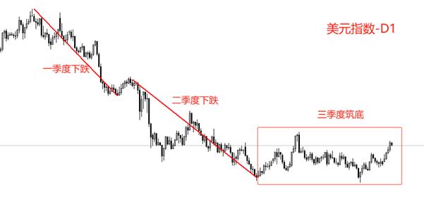 올해 1분기와 2분기 미국 달러지수는 110포인트와 104포인트에서 각각 최저 103포인트와 96포인트로 하락했다. 하락세는 빠르고 컸다. 미국 달러 지수가 3분기에 96선 이상으로 안정되고 더 이상 신저점을 기록하지 못한 이유는 무엇입니까?