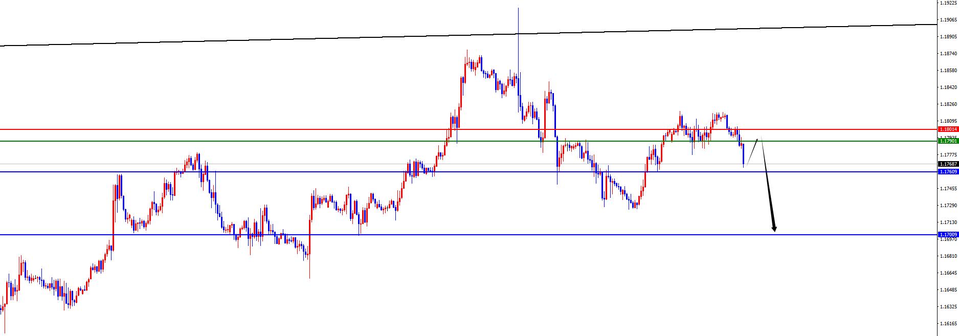 欧美1.1790-1.1800区间空,防守40点,目标1.1760-1.1700
