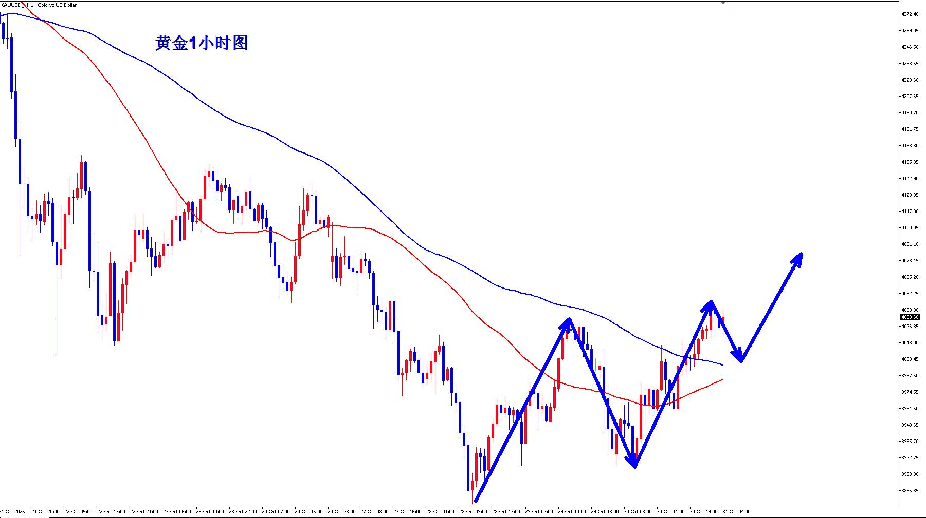黄金1小时均线开始拐头,黄金多头可能开始有反击的力度。如果黄金向上形成金叉,那么黄金日线可能开始一波反弹,黄金短线回踩注意3995一线的支撑可以顺势多,今天黄金月线收官之日,今天也是多空力度的关键之日,今天强势,那么对黄金后期强势的延续会提供很大的支撑。