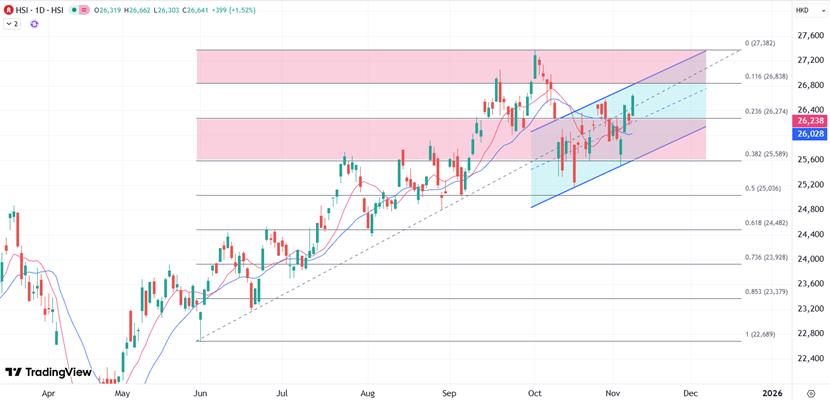 Ações da XM Hong Kong: a melhoria técnica do índice Hang Seng aguarda a divulgação do desempenho dos gigantes da tecnologia esta semana