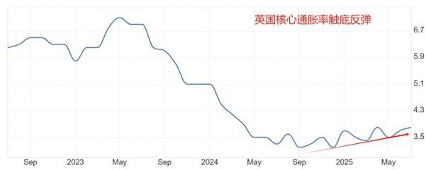 本週四19:00,英國央行將公佈9月利率決議結果,主流預期認為其將維持4%的基準利率不變。英國央行的上一次利率決議在8月7日,當時宣布降息25基點。不過,降息的結果是在第二輪投票時達成的,並且投票結果的比例為5比4,局勢非常驚險。英國央行官員中,反對降息支持暫停降息的人越來越多。主要原因是,英國的通脹率已經出現觸底反彈跡象,如果一味的降息,向市場提供過剩的流動性,高通脹問題可能重新出現。數據來看,英國7月核心CPI年率為3.8%,高於前值3.7%,創出2024年5月以來最高點。英國央行認可的通脹標准在2~3%之間,當前的通脹水平嚴重超過目標,這是英國央行選擇暫停降息的核心理由。