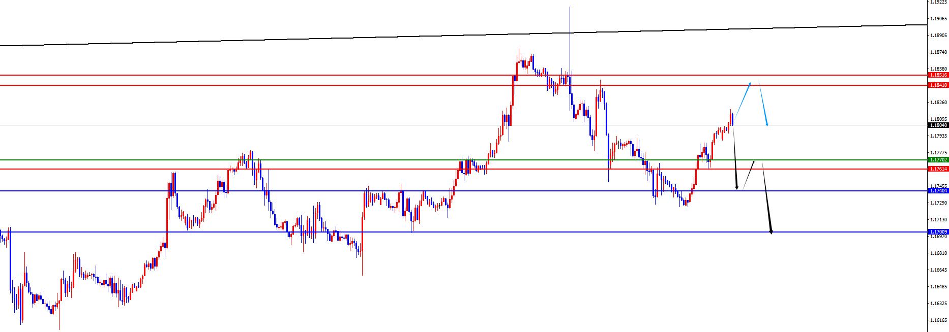 歐美1.17840-50區間空,防守40點,目標1.1760-1.1700(如若先跌破四小時支撐可以提前看承壓)