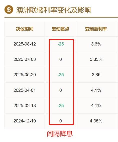 本週二12:30,澳洲聯儲將公佈9月利率決議結果,主流預期認為其將維持3.6%的基準利率不變。今年以來,澳洲聯儲已經降息三次,累計幅度75基點,最近一次降息出現在8月份。歷史數據看,澳洲聯儲遵循“間隔降息”的策略,也就是8月份降息後,9月份暫停降息,之後在11月份再次降息。經濟數據看,澳大利亞的二季度GDP年率增速為1.8%,連續三個月升高。二季度核心通脹率為2.7%,連續十期下降。最新失業率為4.2%,低於5%的警戒水平。七月份出口總額460.2億澳元,創出近21個月新高。綜合來看,澳大利亞的經濟數據表現良好,利率沒有必要大幅度下調,支持本週澳洲聯儲維持基準利率不變的判斷。