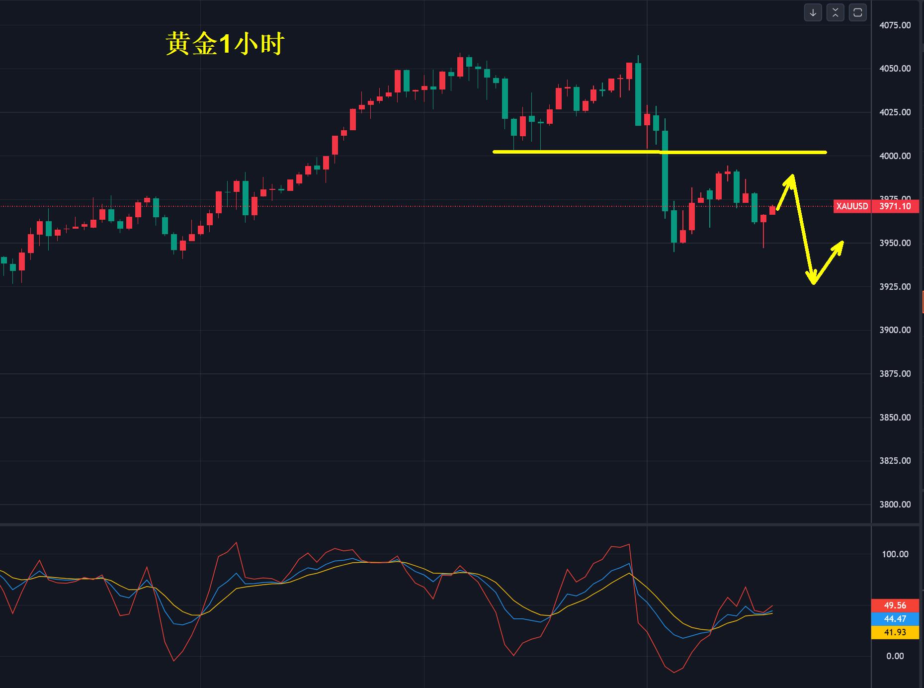 另外,文章中我們主要強調是當下日內的行情,並非長線方向佈局,多空的轉變是以當天為主,黃金兩次到4055美元附近,假期獲利盤選擇離場引發了拋售,今天區間在4000-3945美元,破位將延續。