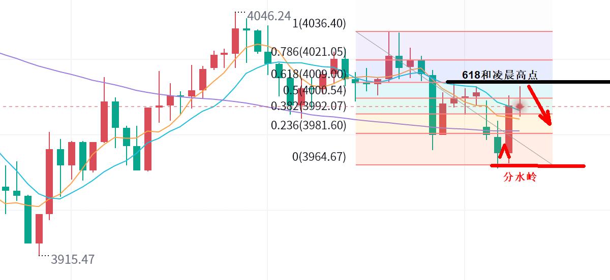 上方618位置4009,高點位置4037,歐盤如果一直在4009上方運行,那麼晚上還要多。