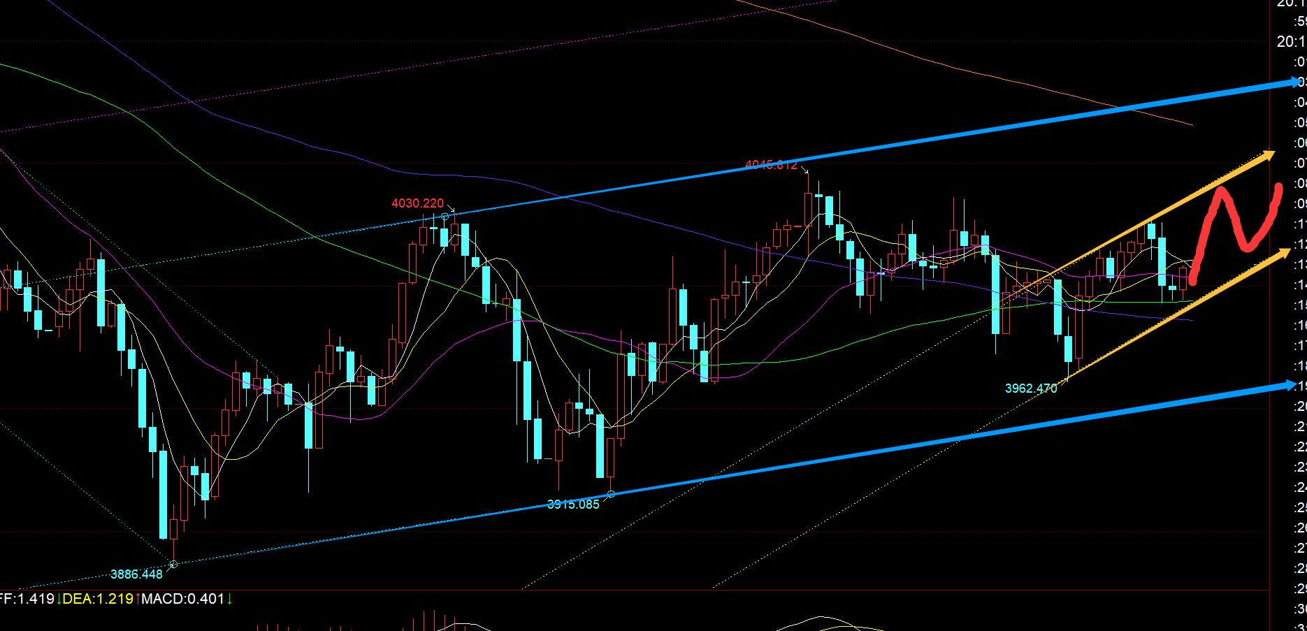 第一,黃金方面:日線級別當前是符合週視頻指出的震盪,圍繞5日和10日之間爭奪整理,早間刺破5日是一個假動作;所以,最終要看收盤的有效性,10日阻力下移4036-38,5日支撐3983;