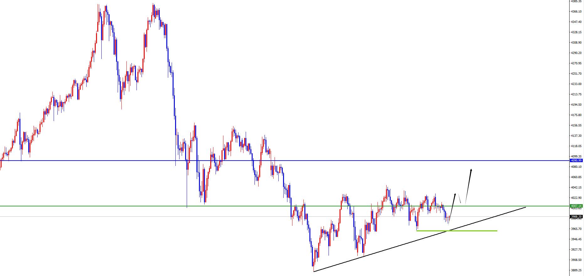 關鍵分水嶺4007,價格在3960-4040區間震盪,不破昨底震盪偏多對待
