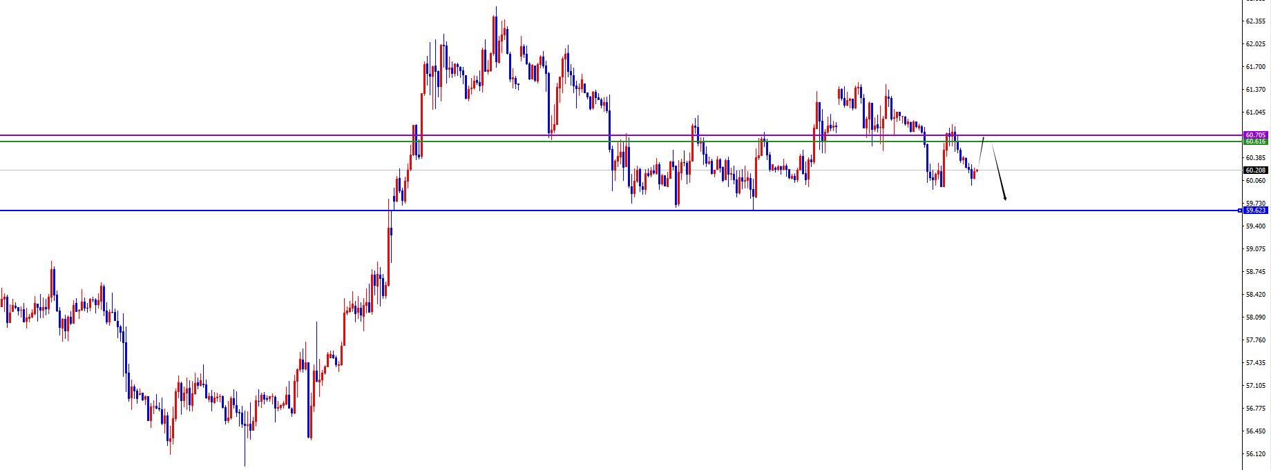 整體上目前處於59.60-61.50區間震盪,打破區間才會發力