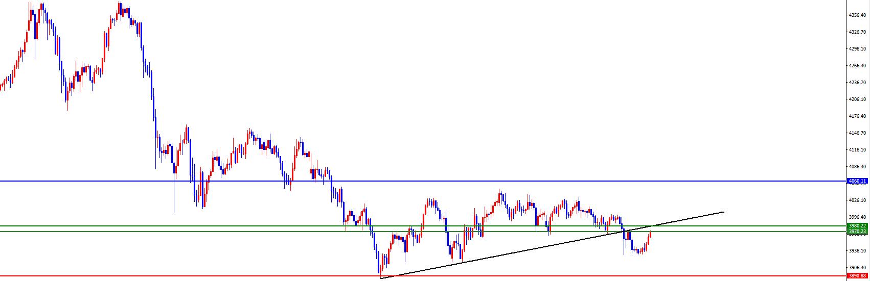 關鍵分水嶺3970-3980,價格昨日跌破則目前短線先看承壓