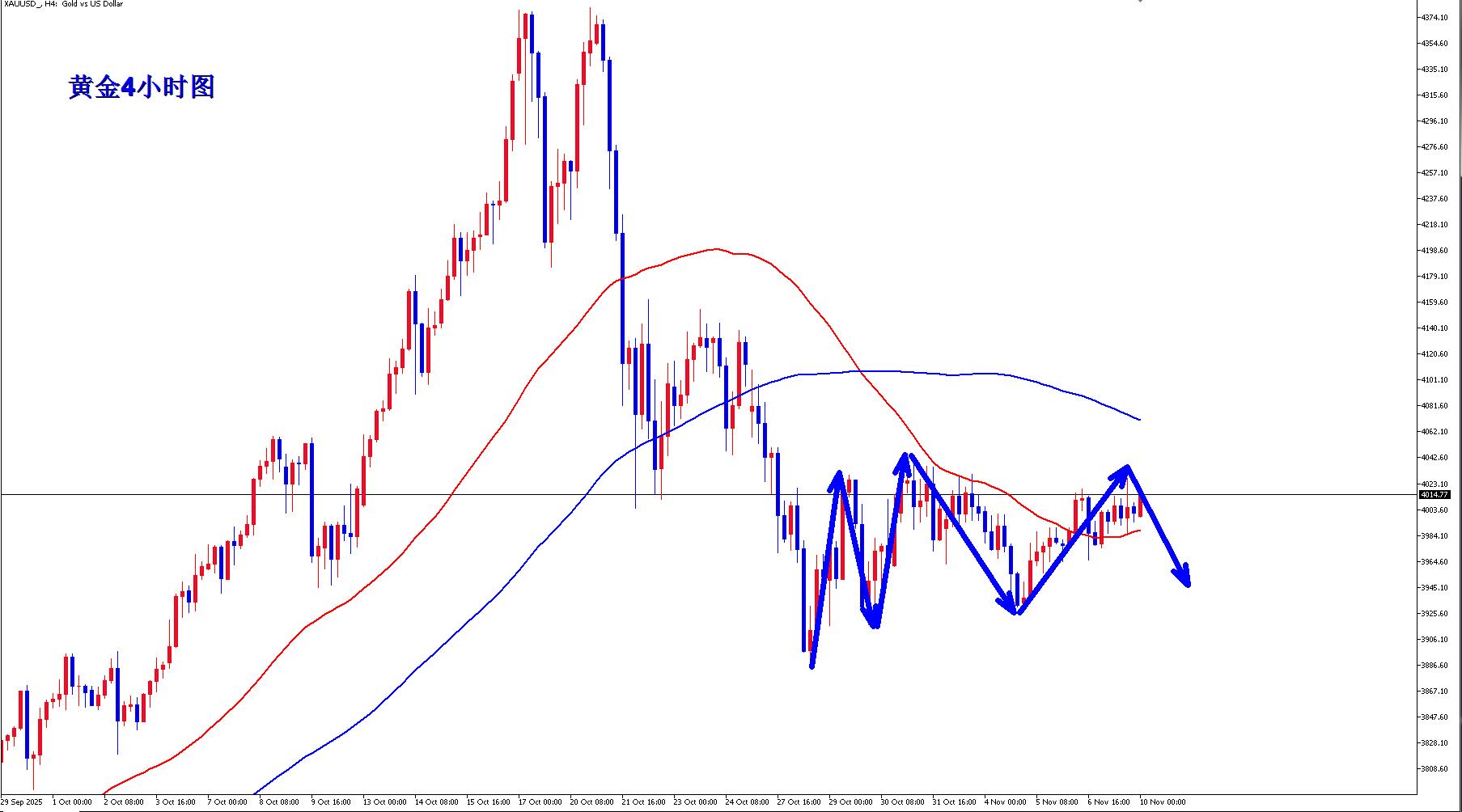黃金4小時也整體還是在大區間內震盪,黃金短期重要阻力區域再4030上方,如果不能突破有效站穩4030上方的支撐,那麼黃金短線還是需要留意繼續承壓高位衝高回落,這也是黃金最近的主要節奏,急漲就衝高回落,急跌就探底回升。黃金早盤承壓4030上方區域阻力還是繼續逢高空。