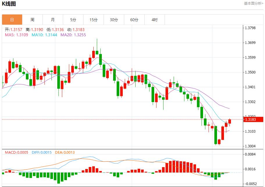 英鎊/美元:截止北京時間21:20,英鎊/美元上漲,現報1.3184,漲幅0.16%。紐市盤前,(GBPUSD)價格在最後一個交易日下跌,受關鍵阻力1.3155的穩定性影響,以收集其先前上漲的收益,並試圖獲得可能有助於突破該阻力的看漲勢頭,此外還試圖卸載相對強度指標上的超買條件,特別是在出現負交叉的情況下。價格依賴於其EMA50的支撐,盤中強勢看漲修正波占主導地位。