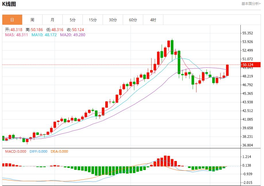 現貨白銀:截止北京時間21:20,現貨白銀上漲,現報50.119,漲幅3.73%。紐市盤前,(白銀)價格在最近一次交易中在日內水平上持續上漲,突破49.40美元的關鍵阻力,受到其在EMA50上方的持續交易的支持,並在主要看漲趨勢和短期次要趨勢線的主導下交易,除了相對強度指標上出現積極信號外,儘管達到了超買水平。